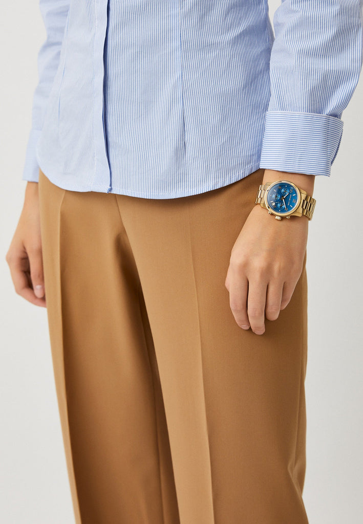 Michael Kors Runway Chronograph Blue Dial Gold Steel Strap Watch For Women - MK7353