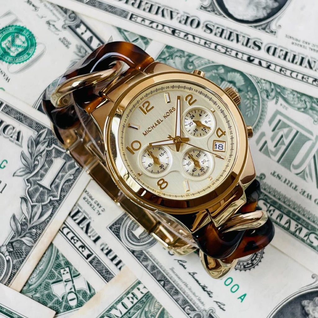 The Women’s Michael Kors Watch MK4222 (MK4222) is available to buy from Shade Station. It features a gold and tortoise chain effect bracelet strap, a gold plated stainless steel case and has a white with three hand movement, sub dial chronograph and date window dial. The MK4222 comes with an official Michael Kors Watches 2 year guarantee.