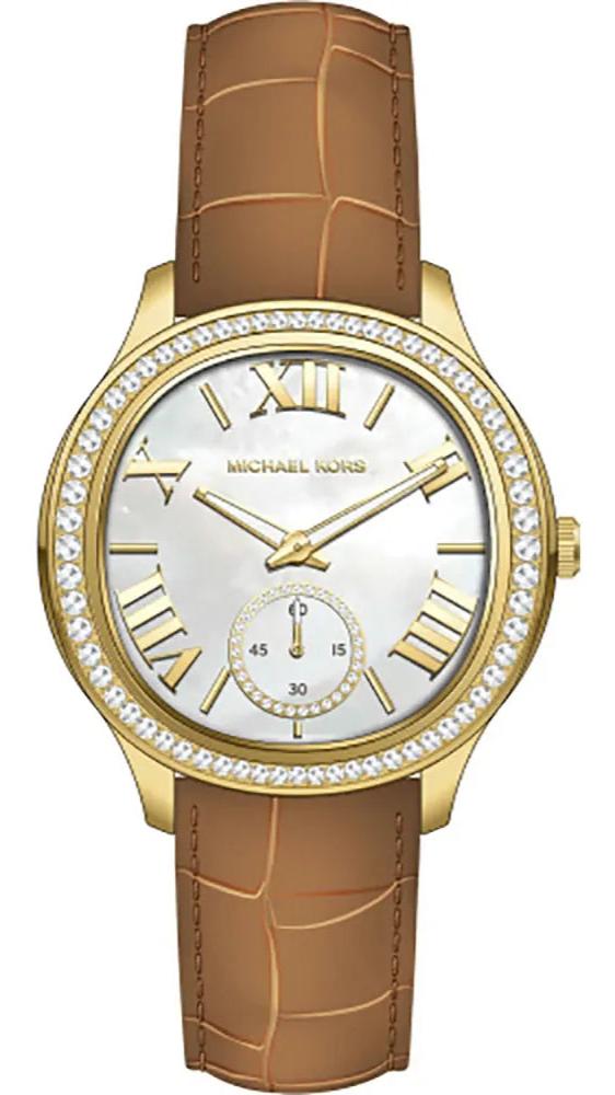 Michael Kors Sage Three-Hand Mother of Pearl White Dial Brown Leather Strap Watch for Women - MK4819