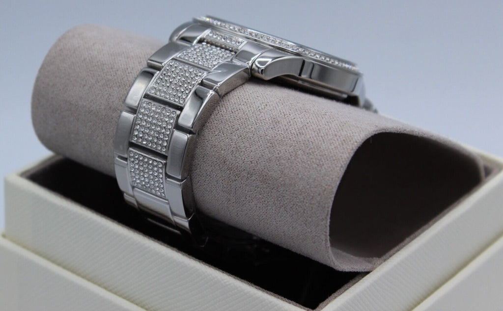 The Michael Kors MK7294 Tibby Chronograph is a refined and elegant timepiece that exudes modern sophistication. Its silver-tone stainless steel case and crystal-embellished bezel add a touch of glamour, while the silver dial offers a sleek and contemporary look. The watch features a 40mm case size and a matching stainless-steel bracelet for a cohesive and stylish appearance.