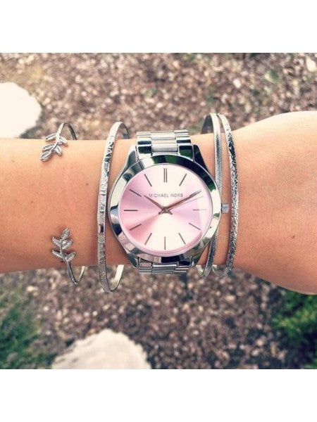 Michael Kors Silver Slim Runway Pink Dial Women's Watch MK3380