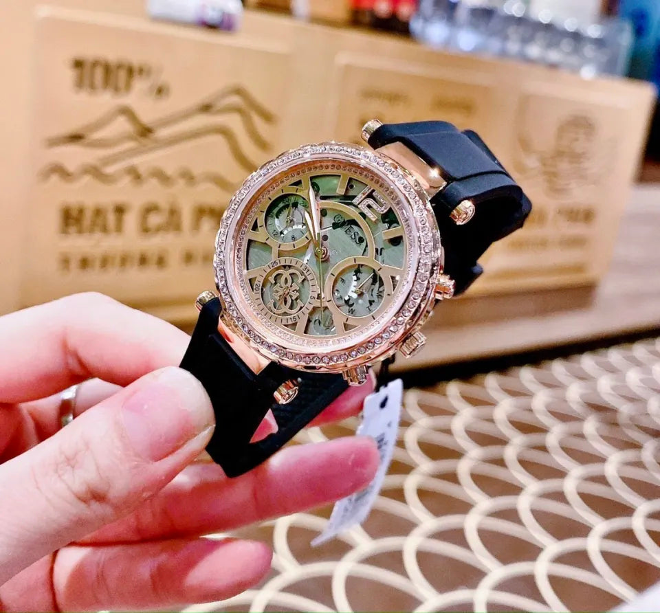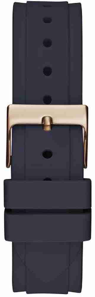 Guess Solistice Diamonds Roe Gold Dial Black Rubber Strap Watch for Women - GW0484L2
