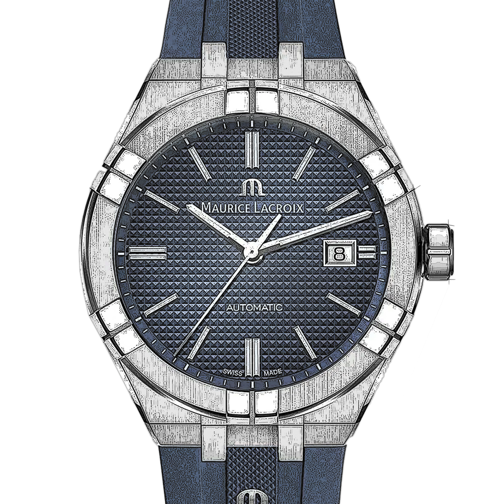 Experience luxury and style with the Maurice Lacroix Aikon Automatic Date Blue Dial Watch. With its vibrant blue silicone strap and stunning blue dial, this watch exudes confidence and sophistication. Featuring automatic date display, this watch seamlessly combines function and fashion. Elevate your look with the Maurice Lacroix Aikon.