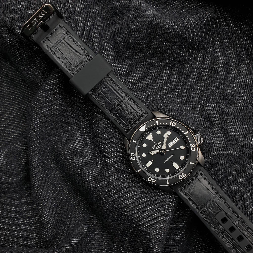 Seiko 5 Sport Automatic Black Dial Black Silicone Strap Watch For Men - SRPD65K3