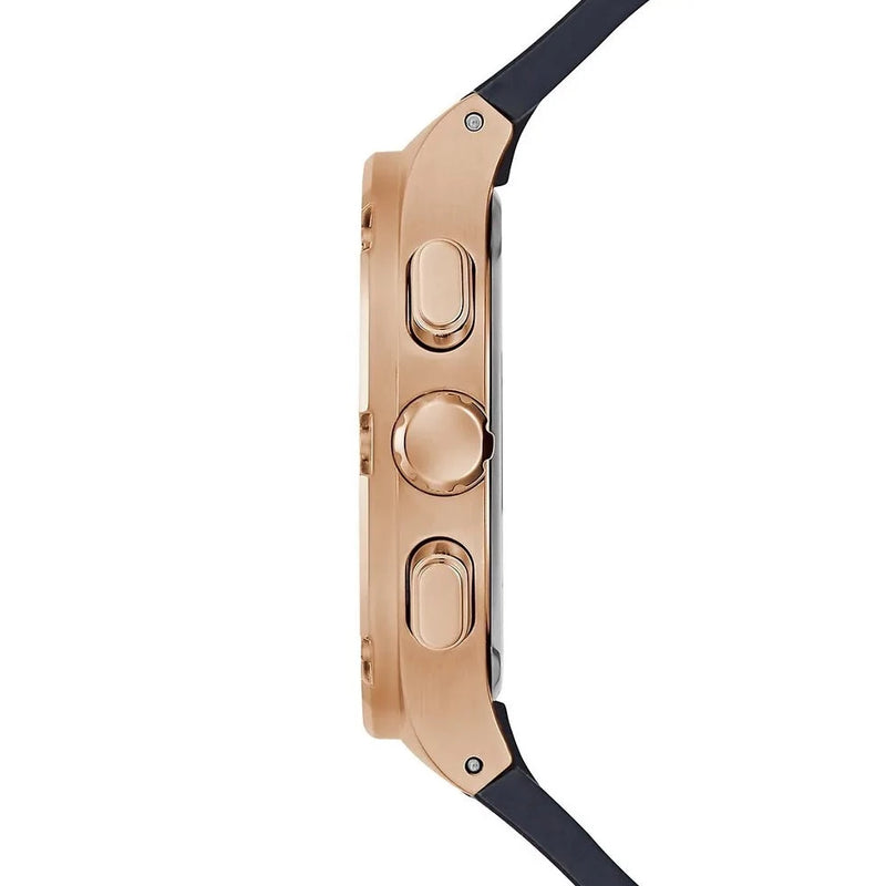 Quartz men's watch Guess GW0571G2 from the Headline collection is an effective model with an elegant and streetwear character. Attention is drawn to an interestingly designed steel envelope and bezel in a pink -flammable shade. In addition, the model also consists of a comfortable navy blue silicone belt and a shield in the same shade. On the dial there are a sub-dy-date sub-date and 24h time