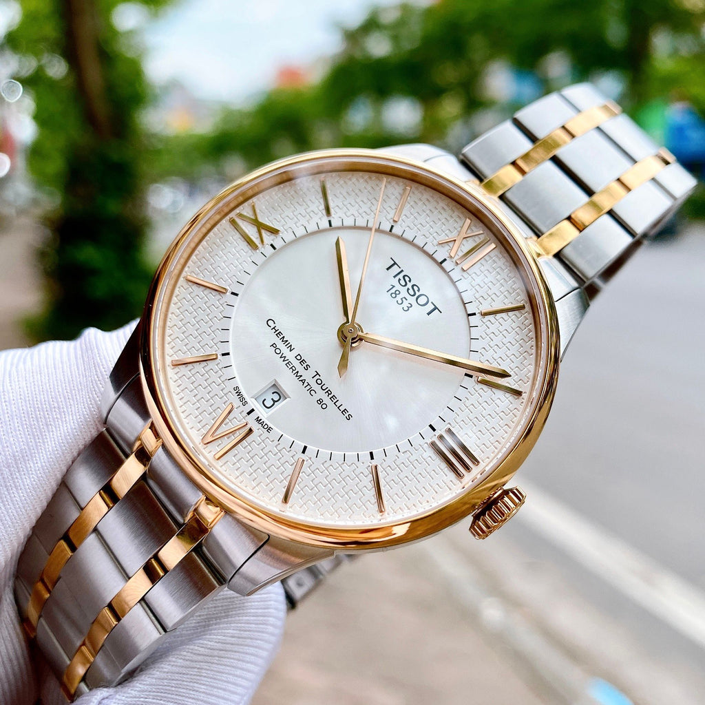 Tissot Chemin des Tourelles Powermatic 80 Helvetic Pride Silver Dial Two Tone Steel Strap Watch for Men - T099.407.22.038.01