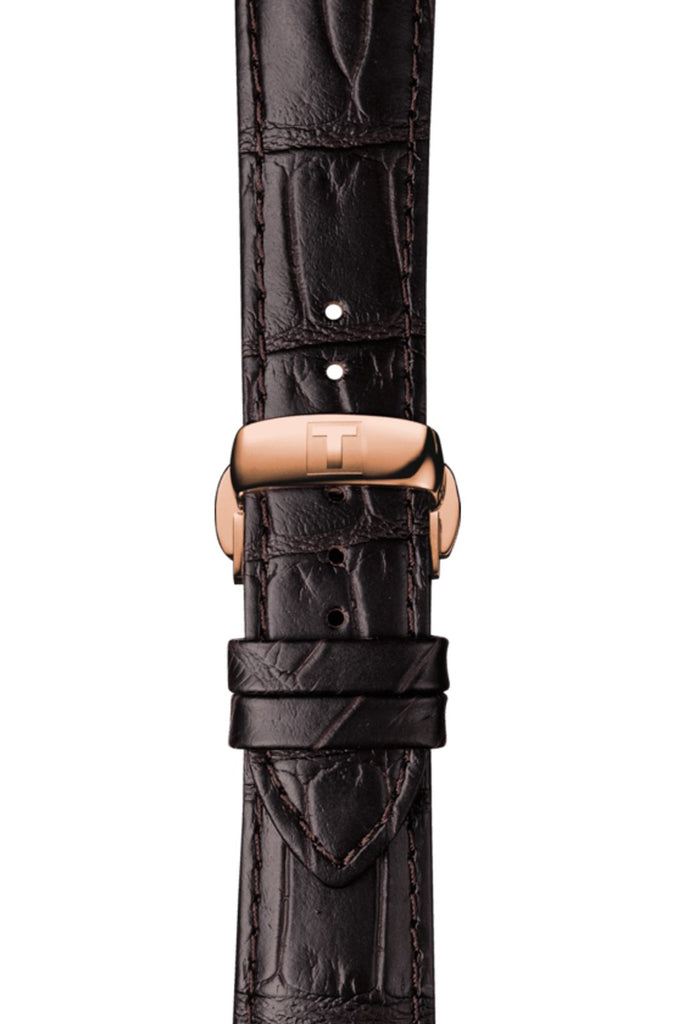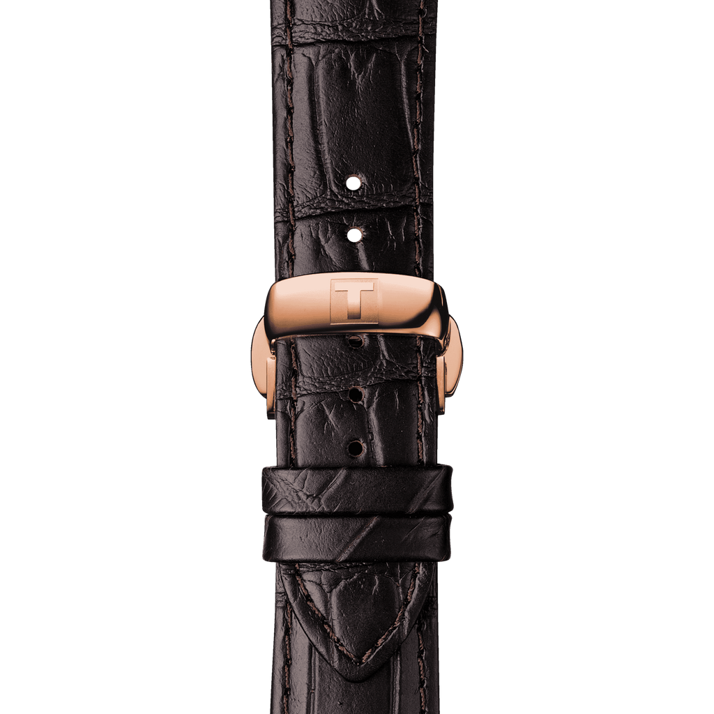 Experience luxury and precision with the Tissot Des Tourelles Automatic Chronograph Watch. Boasting a stunning rose gold PVD finish and brown leather band, this watch exudes style and sophistication. Its automatic chronograph feature ensures accurate timekeeping, while the durable materials provide long-lasting quality. Elevate your everyday look with this standout timepiece.