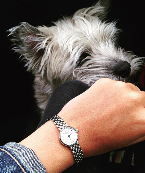 The Tissot Lovely Round Mother Of Pearl Watch T140.009.11.111.00 combines a 20mm round-shaped stainless steel case and a silver stainless steel bracelet with a push button deployment clasp. It has a white mother-of-pearl sunray analogue dial with silver indexes and hands, protected beneath faceted scratch-resistant sapphire crystal glass. Power is generated by the Swiss quartz movement. This model also has a water resistance of up to 30 metres.