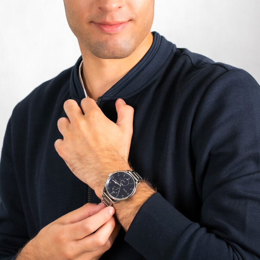 Tommy Hilfiger Chase Multifunction Blue Dial Silver Steel Strap Watch for Men - 1791575