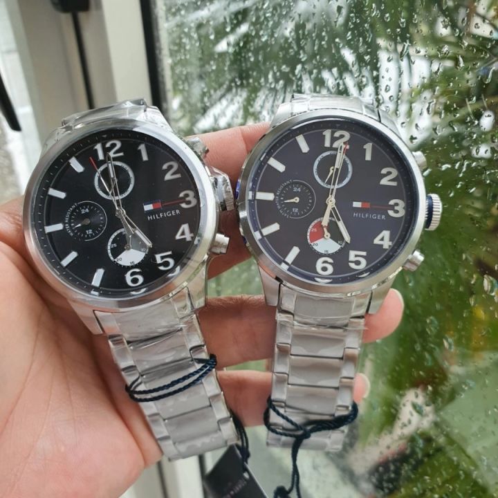Quartz movement. Scratch resistant mineral crystal. Solid case back. Case diameter: 44 mm. Case thickness: 13.2 mm. Round case shape. Band width: 22 mm. Deployment clasp. Water resistant at 50 meters / 165 feet. Functions: chronograph, day, date, hour, minute, second. Sport watch style. Tommy Hilfiger Jackson Multi-Function Blue Dial Stainless Steel Men's Watch 1791242.