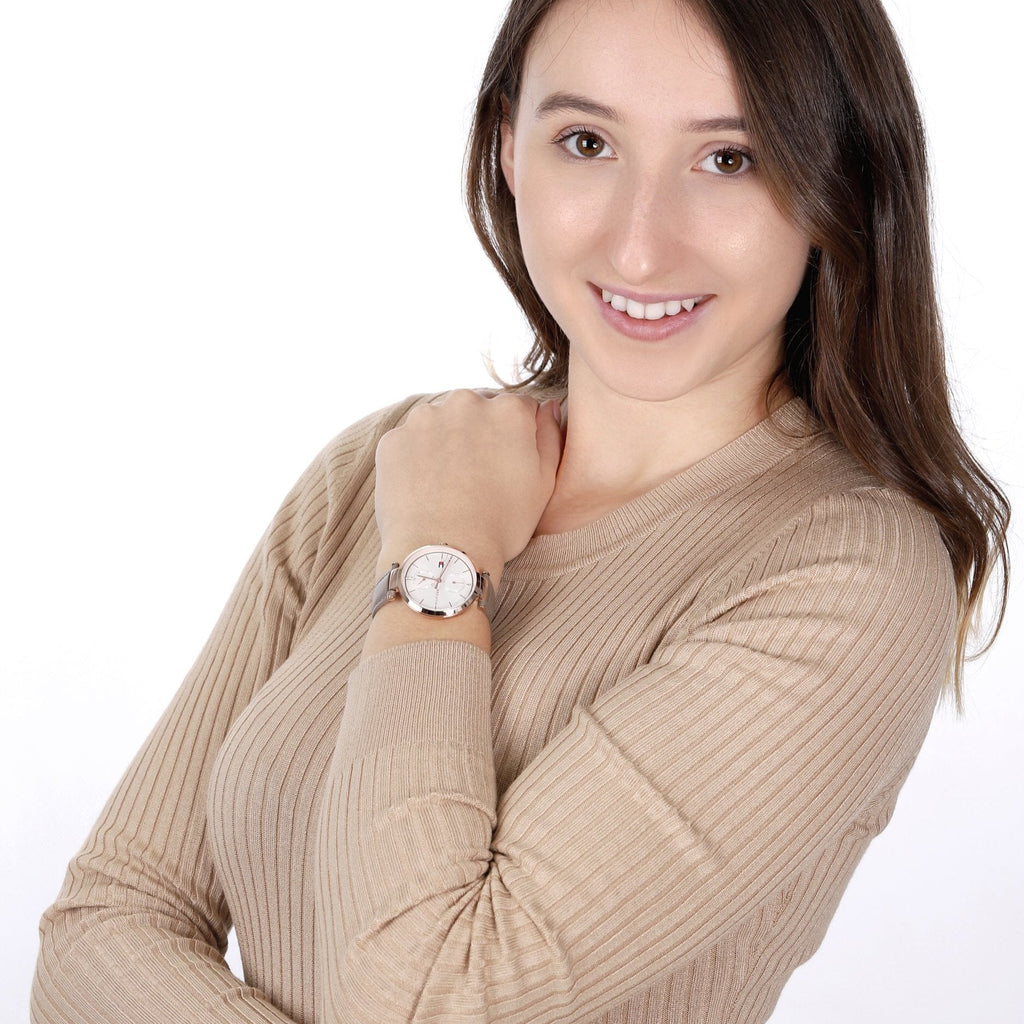 Tommy Hilfiger Angela Quartz Silver Dial Brown Leather Strap Watch for Women - 1782125
