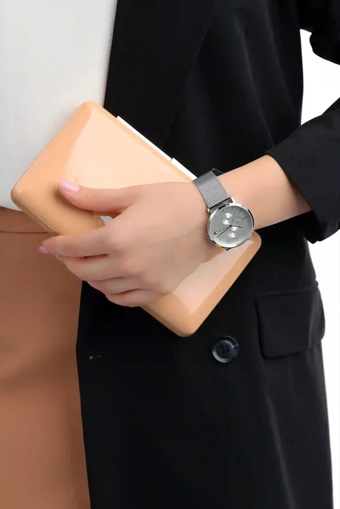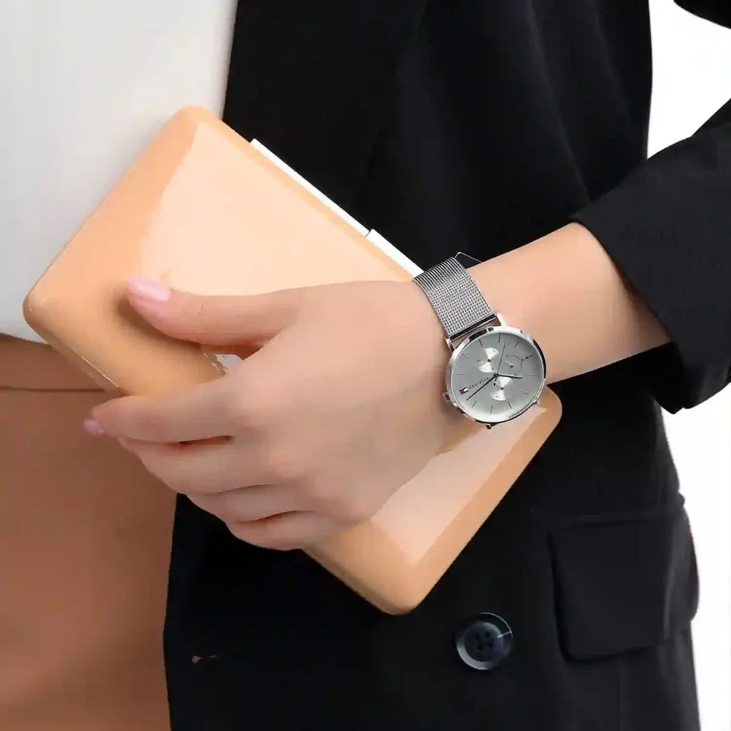 Tommy Hilfiger Jenna Quartz Silver Dial Silver Mesh Bracelet Watch For Women - 1781942
