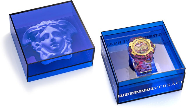 The coolest watch that meets the anticipation of an audience looking for something new and trendy. The Icon Active conveys an urban and sporty look with its transparency and color. Absolutely and exquisitely iconic, design elements include the metal loop on the strap that recalls the Greek Key, a Medusa at 12H and an internal Greek Key that can be seen from the curvature of the inner dial ring.