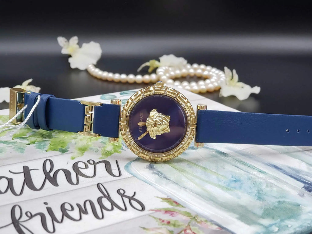 Versace Palazzo Empire Greca Quartz Blue Dial Blue Leather Strap Watch for Women - VEDV00219