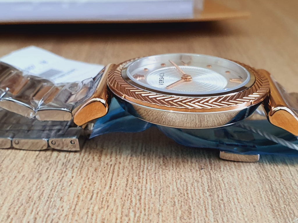 Versace V-Motif Silver Dial Two Tone Steel Strap Watch for Women - VERE00718