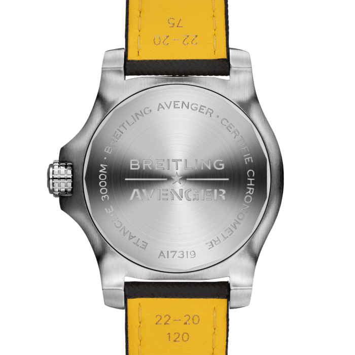 Bold, extremely robust and shock resistant, the Avenger Automatic 45 Seawolf is a pilots’ watch prepared for adventures well below the ocean’s surface (up to 300 bars - 3.000m). As a true Breitling Avenger, it can be used wearing gloves and offers unrivalled safety and reliability to any airborne adventurer.
