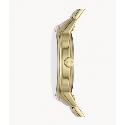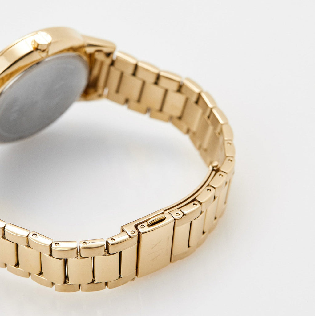 - Gold plated stainless steel bracelet with 2 pusher foldover clasp closure; interchangeable with armani exchange 20mm watch straps