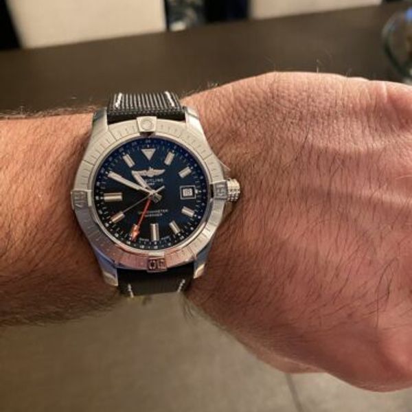 Bold, extremely robust and shock resistant, the Avenger Automatic GMT 43 features an additional red hand indicating a second time zone. As a true Breitling Avenger, it can be used wearing gloves and offers unrivalled safety and reliability to any airborne adventurer. The Avenger Automatic GMT 43 features a sturdy 43 mm stainless-steel case, black dial, and a choice of a stainless-steel bracelet or a black military leather strap that fits either a stainless-steel pin buckle or folding clasp. Thanks to its rugged bezel and its special grip pattern on the crown, the Avenger Automatic GMT 43 can be easily operated wearing gloves.