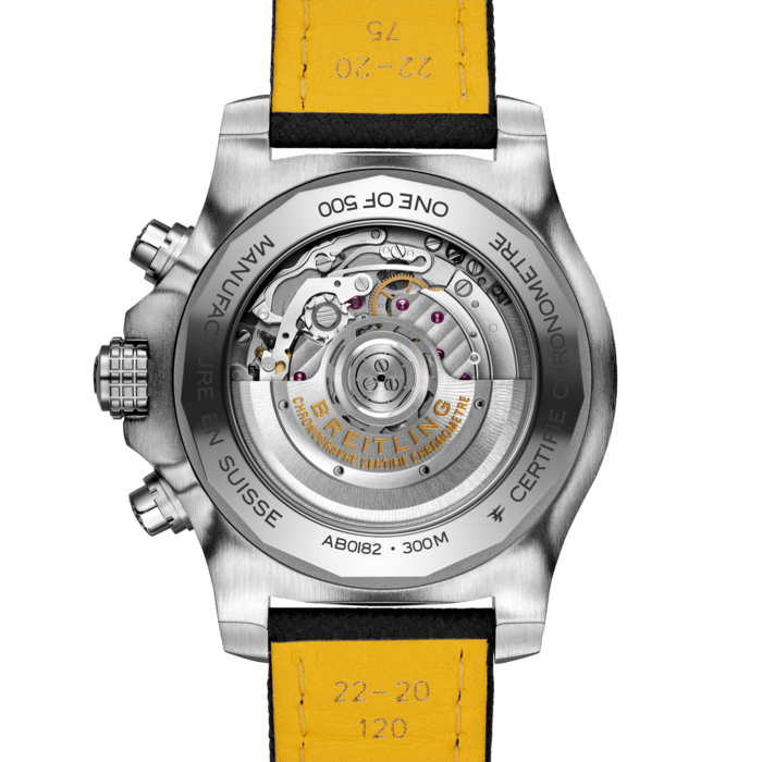 Bold, extremely robust and shock resistant, the Avenger B01 Chronograph 45 combines precision with a powerful design. As a true Breitling Avenger, it can be used wearing gloves and offers unrivalled safety and reliability to any airborne adventurer. The Avenger B01 Chronograph 45 features a sturdy 45mm stainless steel case, anthracite or blue dial and a choice of a stainless steel bracelet, or matching black or blue military leather strap that fits either a stainless steel pin buckle or folding clasp. Thanks to its rugged bezel and its special grip-pattern on the crown and chronograph pushers, the Avenger B01 Chronograph 45 can be easily operated wearing gloves. This edition is limited to 500 pieces.