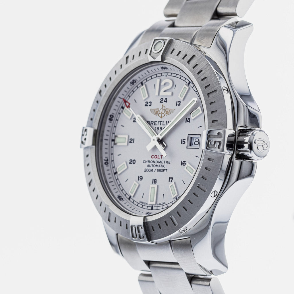Breitling Colt Automatic 44 mm watch. Model reference: A1738811.G791.173A. Steel case. Steel bracelet. Automatic movement. Swiss made. Watch comes in original packaging, with set of documents and 2 years warranty.