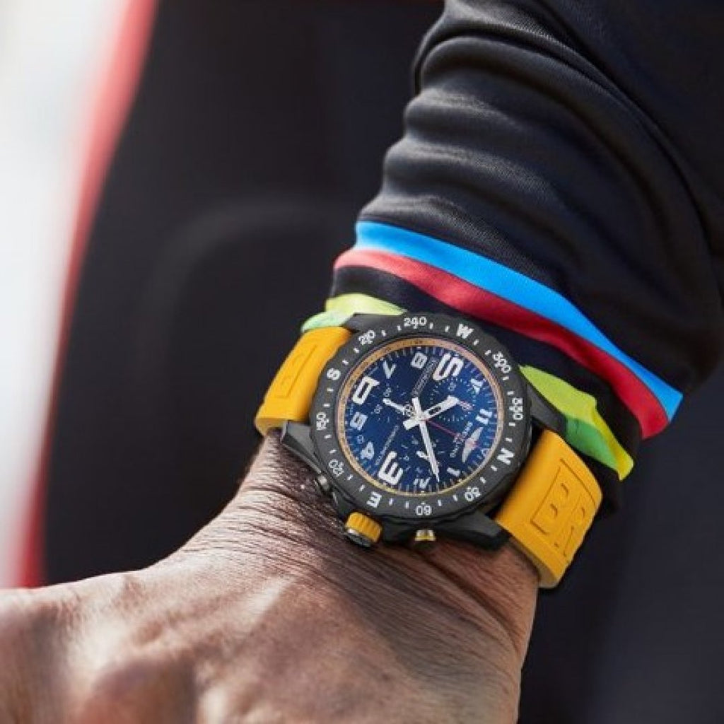 The Endurance Pro features an ultra-light Breitlight® case, a robust material 3.3 times lighter than titanium and 5.8 times lighter than stainless steel. Non-magnetic, thermally stable and hypoallergenic, Breitlight® is highly resistant to scratches, traction and corrosion. It also has a touch that is warmer than metal and a slightly textured effect accentuating the originality of the design. Exclusive to Breitling, it is 100% Swiss-made. Offered with a set of colorful dial and rubber straps fitting a Breitlight® double tang-type buckle, the Endurance Pro can also be paired with one of Breitling’s colorful Outerknown ECONYL® yarn single-piece strap. Powering the Endurance Pro is Breitling’s Caliber 82, a COSC-certified SuperQuartz™ chronograph delivering exceptional precision.