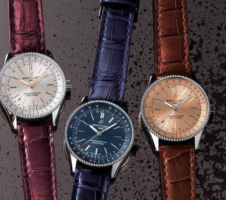 Refined and elegant, the Navitimer Automatic 41 combines the historic appeal of a true icon with the sophistication of a contemporary timepiece. Available in a variety of materials including stainless steel and 18k red gold, the 41 mm case features a beaded bezel and a range of elegant dial colors. Offered either with a matching bracelet or alligator strap that fits both a stainless-steel pin or folding buckle, the Navitimer Automatic 41 is powered by the Breitling Caliber 17, a COSC-certified chronometer.