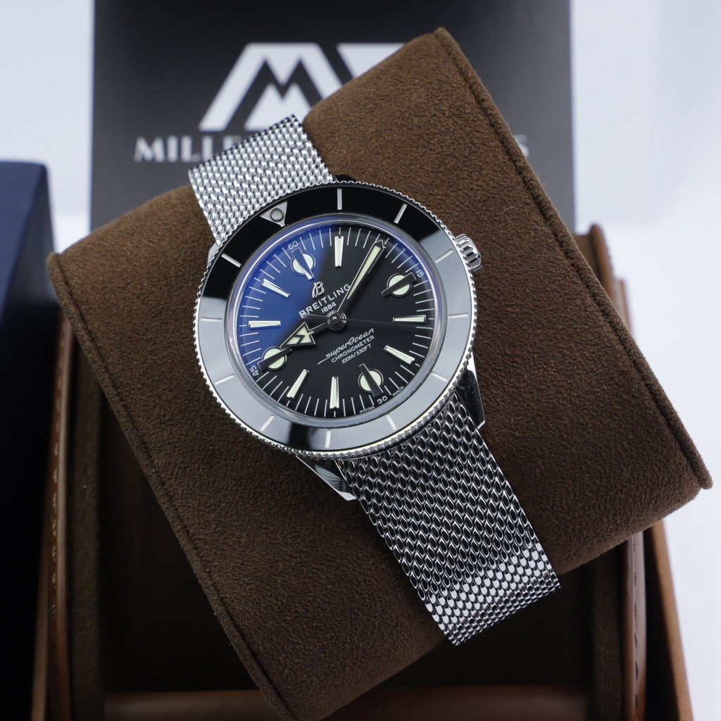 Breitling Superocean Heritage '57 Black Dial Silver Mesh Bracelet Watch for Men - A10370121B1A1 Buy Now By Breitling