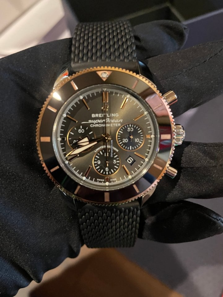 Breitling Superocean Heritage B01 Chronograph 44 Black Dial Black Mesh Bracelet Watch for Men - UB01621A1M1S1 Buy Now By Breitling