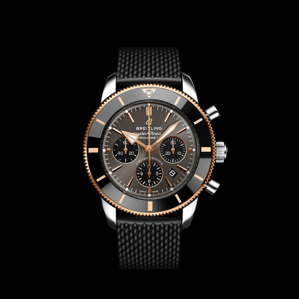 Inspired by the original Superocean from the 1950s, the Superocean Heritage combines iconic design features with a modern touch. Sporty and elegant, the Superocean Heritage is a true embodiment of style at sea. This Superocean Heritage featuring a black-eye gray dial is limited to 200 pieces.