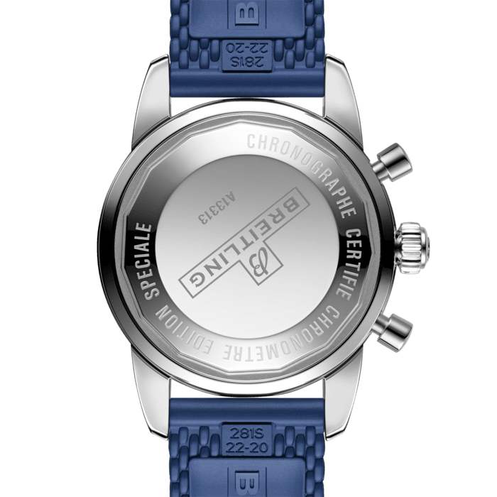 Available in a variety of materials including stainless steel and 18k red gold, the Superocean Heritage Chronograph 44 features a range of colored dials. Offered either with a matching mesh bracelet, or a “mesh-styled” rubber strap fitting a folding buckle, this Superocean Heritage is powered by the Breitling Caliber 13, a COSC-certified chronometer.