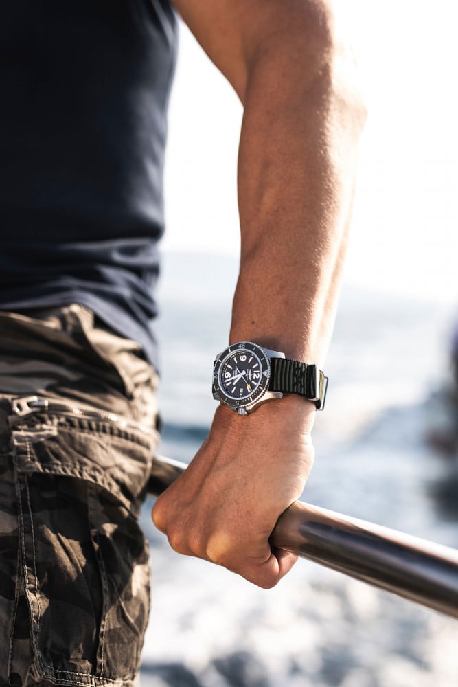 Co-designed with Kelly Slater’s surf wear brand, the sporty, fresh and colorful Superocean Automatic 44 Outerknown features a special ECONYL® yarn NATO strap, repurposed from nylon waste pulled out from the oceans, like fishing nets.