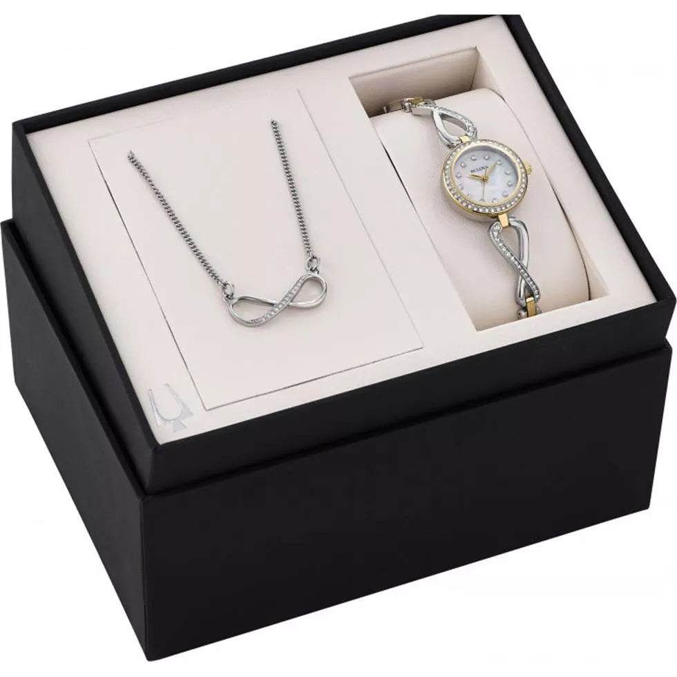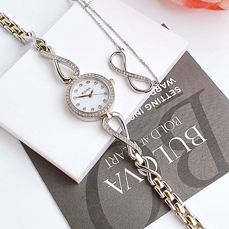 Bulova Analog Crystals Mother of Pearl Dial Silver Steel Strap Watch for Women - 98X109