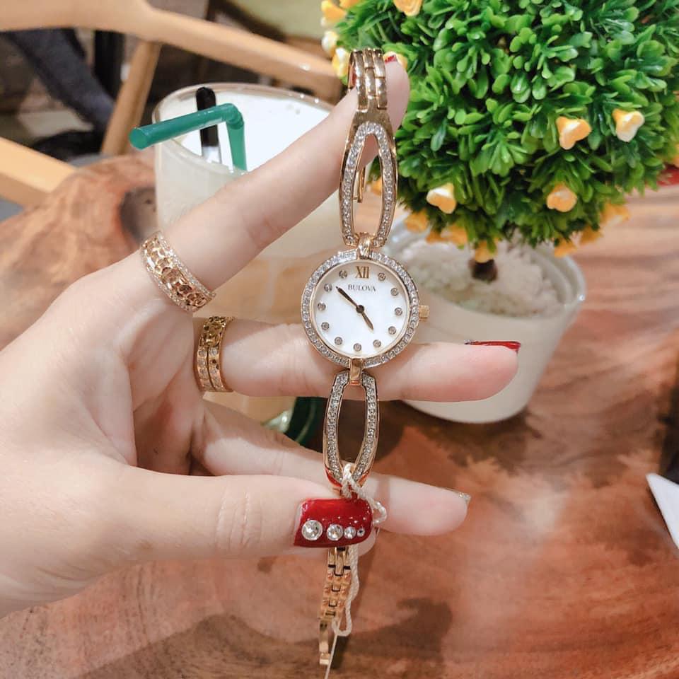 Consider yourself an it-girl? Then this Crystal watch by Bulova has your name all over it. Its stainless steel 26MM case creates a perfectly polished visage for any and every occasion effortlessly demanding the attention of those around you. The case is beautifully balanced by its mother-of-pearl dial as the two colors work together in stylish harmony. It also features gold roman numerals which spices things up just the right amount adding a touch of sophisticated flair to the whole piece and the gold hands contribute to its sleek theme.