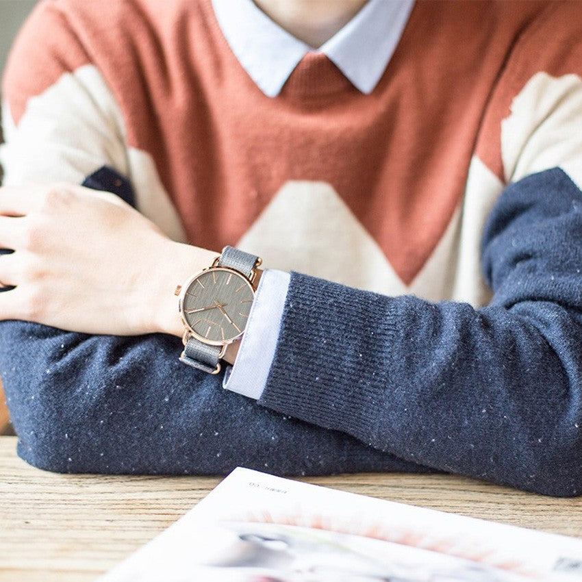 | Bracelet: | Grey textile rose gold colored steel |