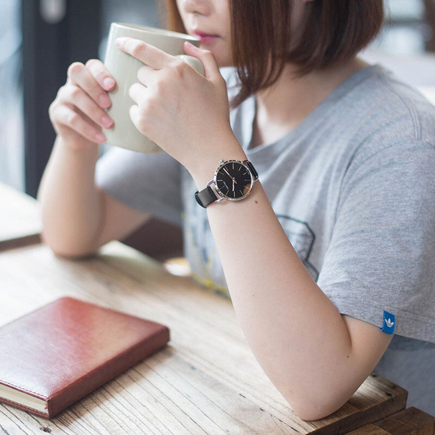 Pure leather strap. Attractive. Calvin Klein even. This watch, available for both men and women, takes inspiration from the enigmatic textures found in the natural environment. By combining simple shapes and rhythmic surfaces, it offers a modern and unique touch.