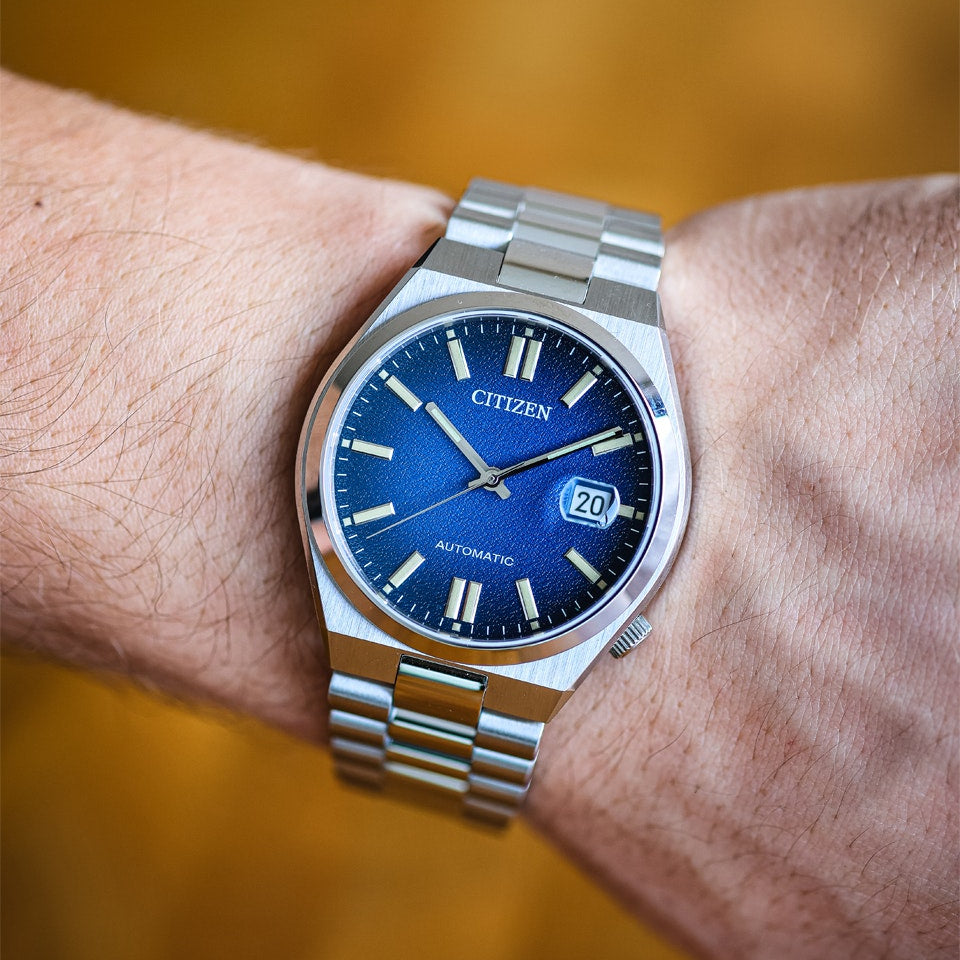 The Citizen NJ0151-88L, also known as the "Tsuyosa", is ideal for those looking for a stylish and contemporary watch. Its 40mm stainless steel case and vibrant blue dial offer a sophisticated aesthetic. The Caliber 8210 automatic movement, with a power reserve of 40 hours, ensures reliable precision. The watch is also equipped with an anti-reflective sapphire crystal and a transparent case back, allowing you to admire the internal mechanism while ensuring protection against scratches
