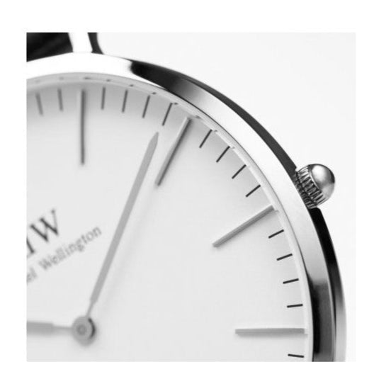 Daniel Wellington Watch Classic Roselyn White 36mm DW00100272. The Daniel Wellington watches Classic Collection, recognized for its clean lines and simple design, was created with modern gentlemen and ladies in mind. With a minimalistic dial and a perfectly dark brown band, this timepiece looks effortlessly elegant. Dressed up or dressed down, this beautiful watch will stand out in any crowd.