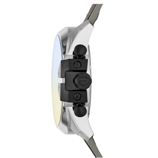 Functions: chronograph, date, hour, minute, second. Mega Chief Series. Casual watch style. Diesel Mega Chief Quartz Black Iridescent Dial Men's Watch DZ4523.