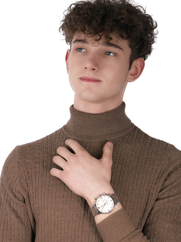 White Dial. Rose Gold Plated Stainless Steel Hands and Indexes. The date at 4 O'Clock.