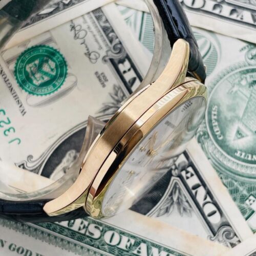 White Dial. Gold Plated Stainless Steel Hands. Printed Indexes. Date between 4 and 5 O'Clock.