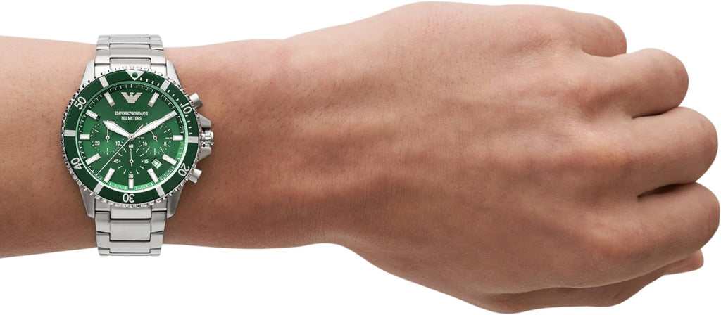 Emporio Armani Diver Chronograph Green Dial Silver Steel Strap Watch For Men - AR11500 Buy Now By Emporio Armani