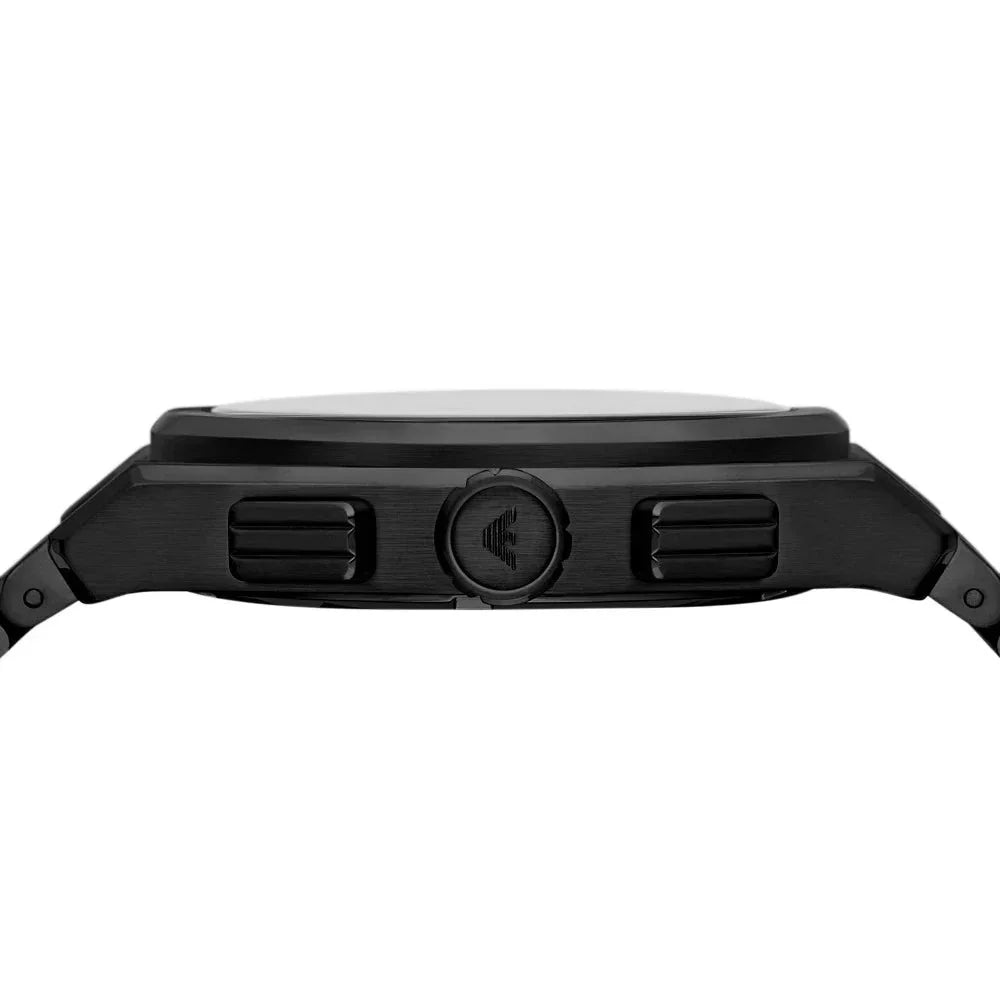 Offering unparalleled precision, this designer watch from Emporio Armani boasts a smooth round face and is fitted with sub-dial chronographs for functionality.