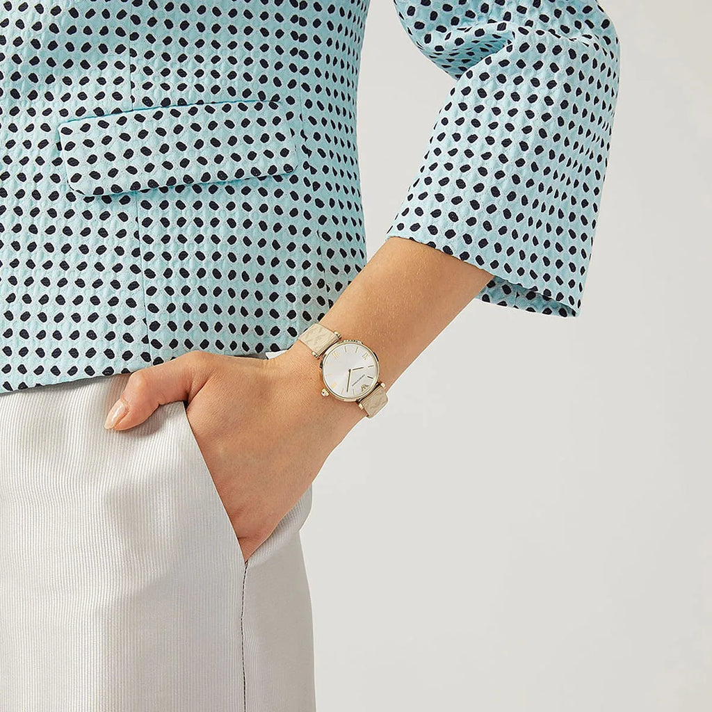 Emporio Armani Gianni T Bar Analog Silver Dial Beige Leather Strap Watch For Women - AR11127 Buy Now By Emporio Armani