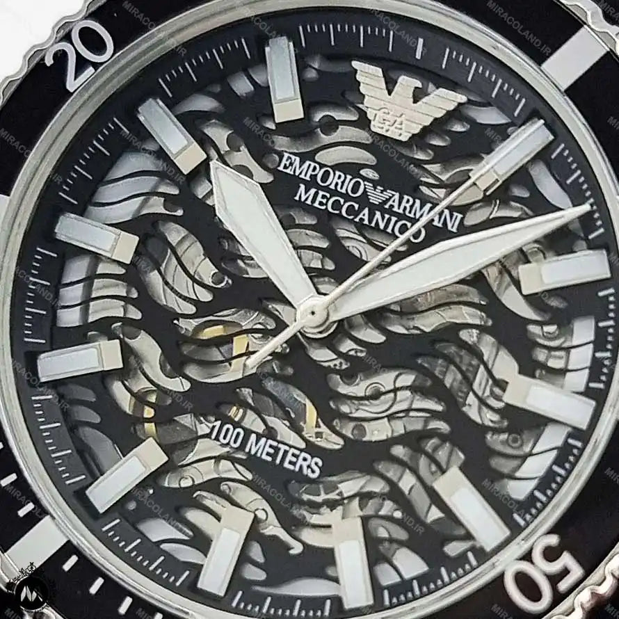Emporio Armani Meccanico Automatic Black Dial Black Silicone Strap Watch For Men - AR60062