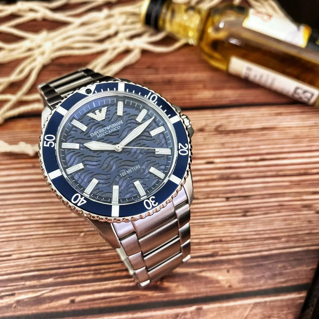 Emporio Armani Meccanico Automatic Blue Dial Silver Steel Strap Watch For Men - AR60059 Buy Now By Emporio Armani