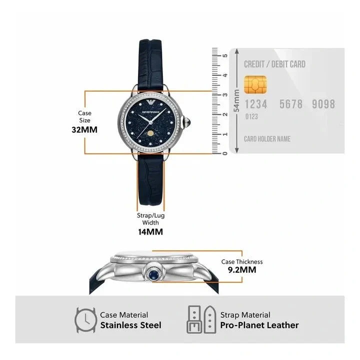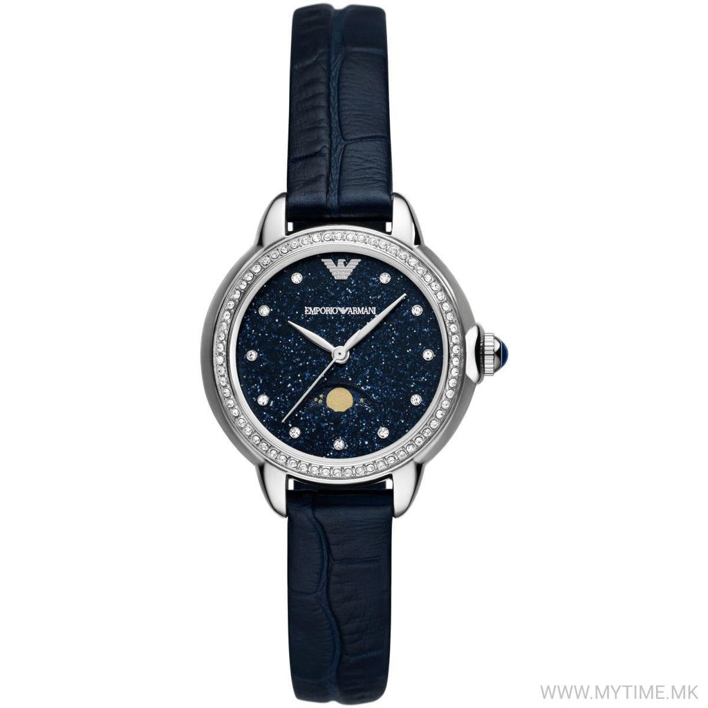 Emporio Armani Mia Moonphase Blue Dial Blue Leather Strap Watch for Women - AR11629 Buy Now By Emporio Armani
