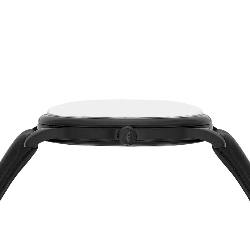 Emporio Armani Minimalist Analog Black Dial Black Leather Strap Watch For Men - AR11573