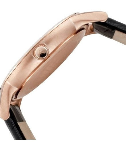 • Black Dial. Rose Gold PVD Plated Stainless Steel Hands and Indexes. Date at 6 O'Clock.