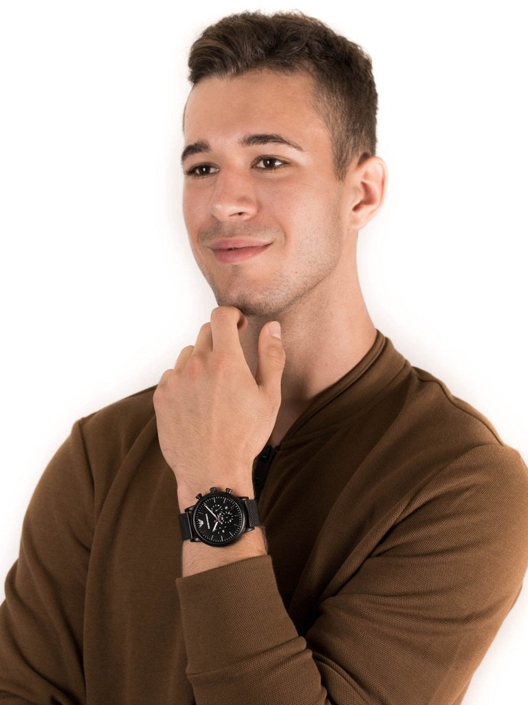 Emporio Armani Sport Chronograph Black Dial Black Mesh Bracelet Watch For Men - AR1968