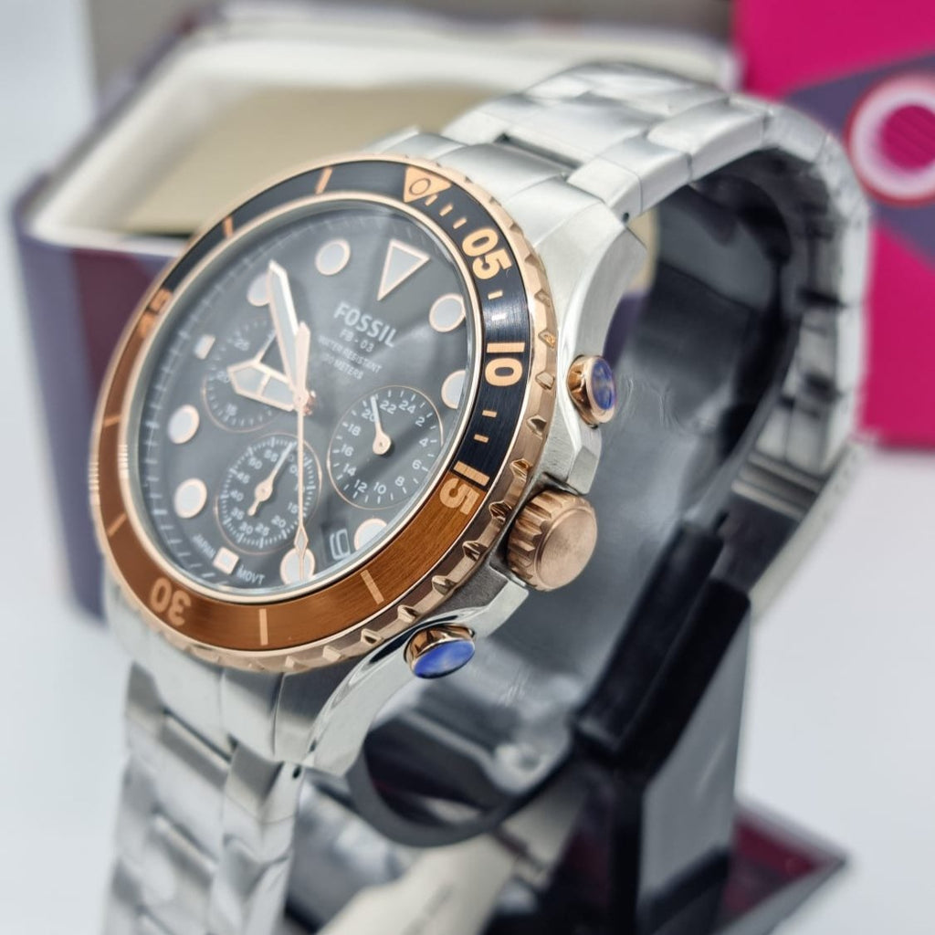 Fossil FB-03 Chronograph Black Dial Silver Steel Strap Watch for Men - FS5768